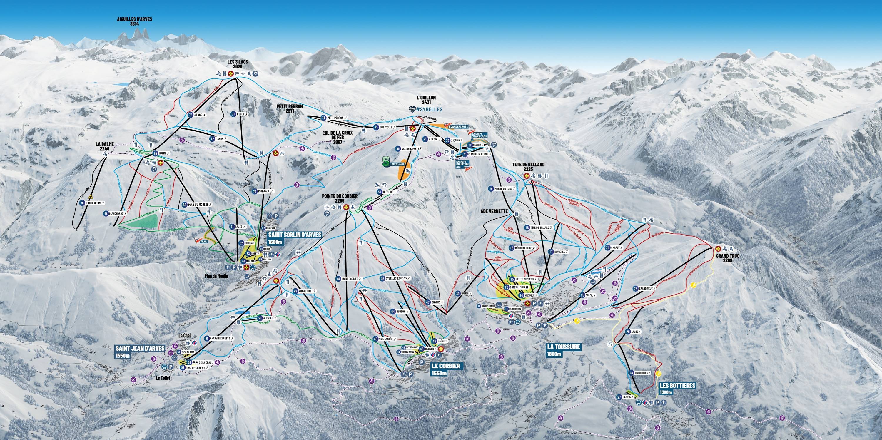 - Hoofdverbindingen met skigebied d.m.v. 4 stoelliften